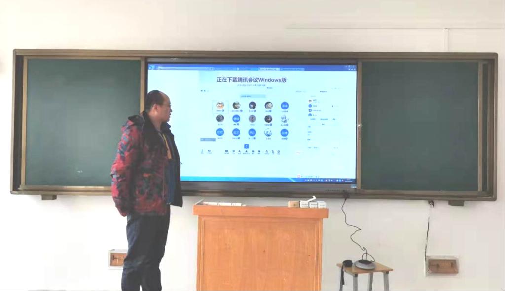 杨晋宁教师采用腾讯会议平台在教室开展线上教学