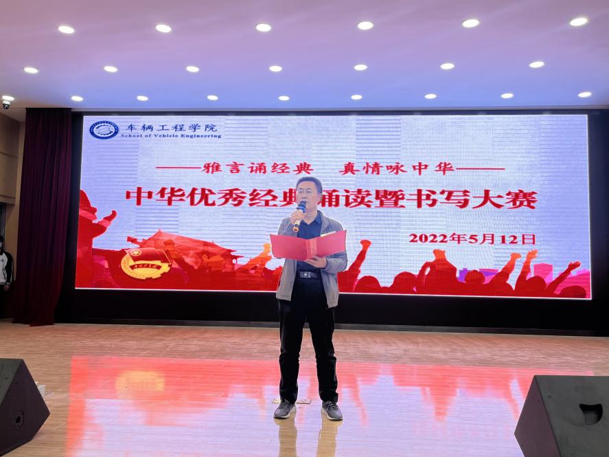 为进一步继承和弘扬中华优秀传统文化、加快推进我院精神文明建设和书香校园建设,营造浓厚的阅读氛围,培养车辆学子的民族自豪感和爱国主义情怀,5月12日晚,williamhill英国在信息楼多功能报告厅举办“雅言诵经典 真情咏中华”经典诵读暨书写大赛活动,以实际行动迎接党的二十大胜利召开。本次比赛由williamhill英国全体领导班子、教研室主任等担任评委。