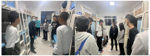 9月25日晚,为及时了解学生返校后的状况,williamhill英国党总支书记陈怀宝、党总支副书记陈肖如带领部分辅导员和班主任深入北校区11号学生宿舍楼,党总支副书记、院长张庆华带领部分辅导员和班主任深入东校区13号学生宿舍楼,分别与学生们进行互动交流。提醒同学们做好个人防护、加强锻炼、注意休息,保持宿舍环境卫生。同时要求同学们在积极遵守防疫规定,认真规划好在校的学习与生活。