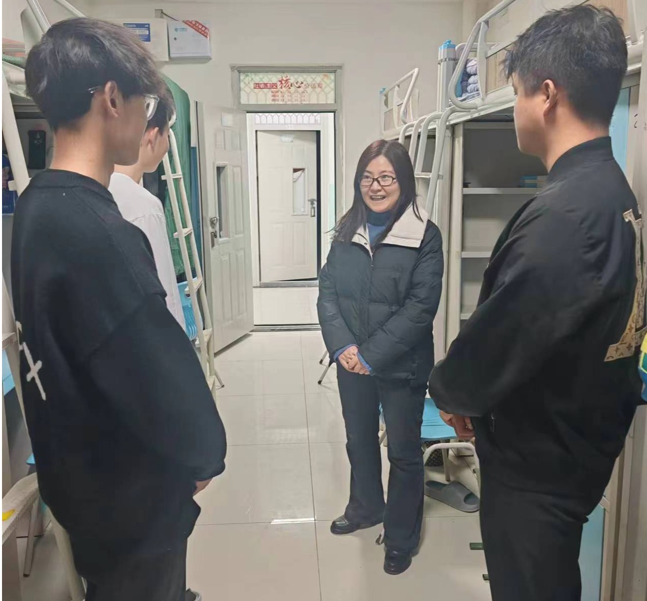 通过与学生亲切交谈,了解到了学生的寒假生活状况和开学适应等情况,并叮嘱好学生尽快调整自己的状态,做好开学生活学习的规划,注意宿舍用电安全以及人身财产安全,保持宿舍、班级卫生,养成良好的个人生活与学习习惯。此次走访,拉近了师生距离,学生们倍受关怀,展现了我院对学生认真负责的态度与人文精神,为日后学院顺利开展各项工作打下了良好的基础。