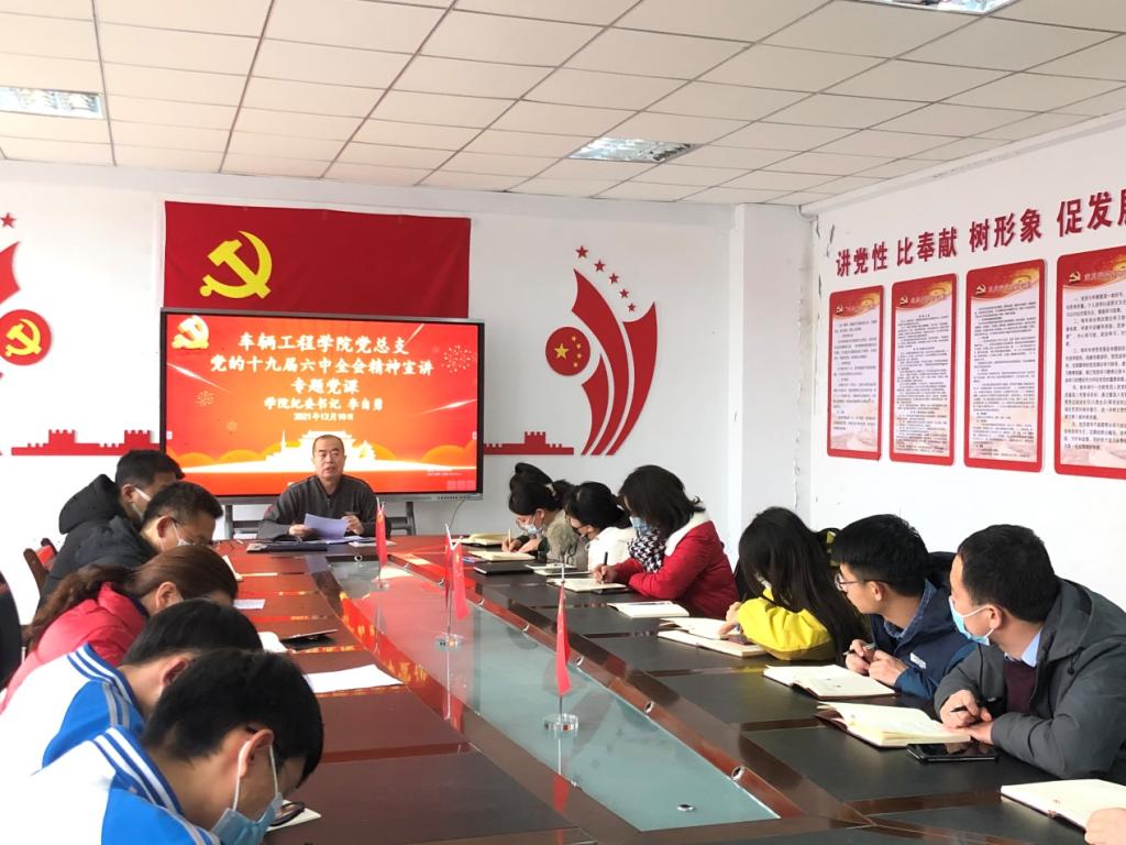 12月10日下午,学院党委委员、纪委书记、省监委派驻学院监察专员李自勇在3号教学楼B301会议室为williamhill英国全体党员、入党积极分子等作学习贯彻党的十九届六中全会精神宣讲报告。williamhill英国主要负责人主持会议。