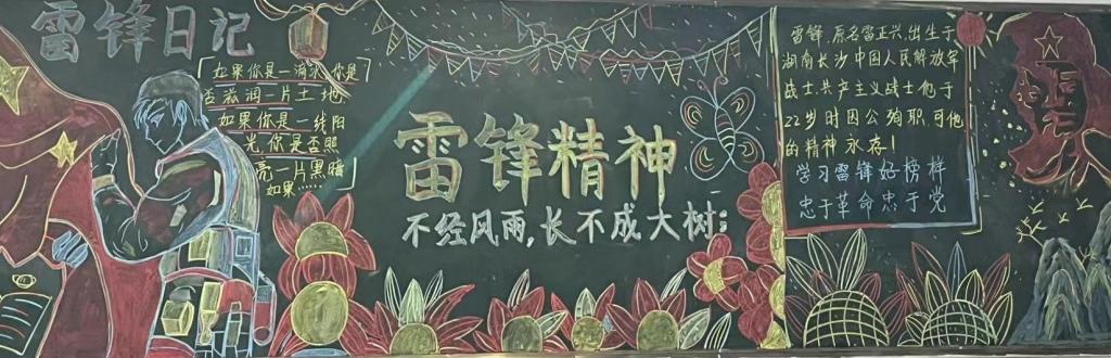 自活动启动以来,各班级积极利用黑板报作为宣传平台,全方位、多角度地介绍了雷锋的生平事迹、摘录了他的日记和名言,并展示了伟人的题词。同时,对雷锋精神进行了深入解析,内容丰富多彩,形式各异。这样做旨在让同学们更好地了解和学习雷锋,真正将雷锋精神内化于心、外化于行。