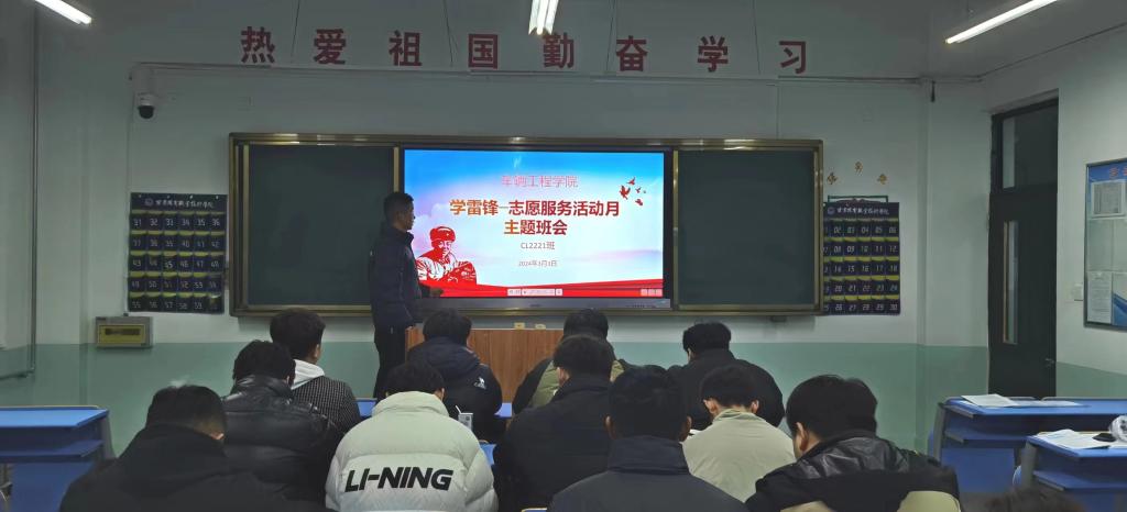 团总支及各班围绕“学雷锋·志愿服务活动”为主题,在本班举行了主题班会。班会内容主要包括学习雷锋精神、研读雷锋日记中的名言节选,以及通过实际行动践行雷锋精神。班会详细介绍了雷锋同志的感人故事,鼓励同学们以雷锋为榜样,亲身实践社会主义核心价值观,努力成为为人民服务的雷锋式优秀青年。