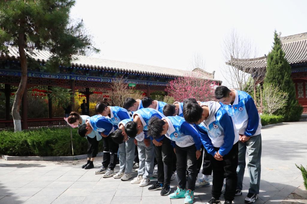 敬献花篮,不仅是对将军个人的缅怀,更是对那段峥嵘岁月、那段不朽历史的铭记。活动伊始同学们以敬献花篮的方式,表达着对这位伟大将军的深深敬仰与无尽怀念。随后,讲解员走上前来,开始生动地为同学们讲解邓宝珊将军的光辉一生。从将军的早年经历,到他在抗日战争中的英勇表现,再到他为国家和人民做出的杰出贡献,每一个细节都被讲解员娓娓道来,让同学们仿佛置身于那段波澜壮阔的历史之中。在讲解员的引导下,同学们不仅了解了邓宝珊将军的光辉一生,更接受了一次深刻的爱国主义教育。