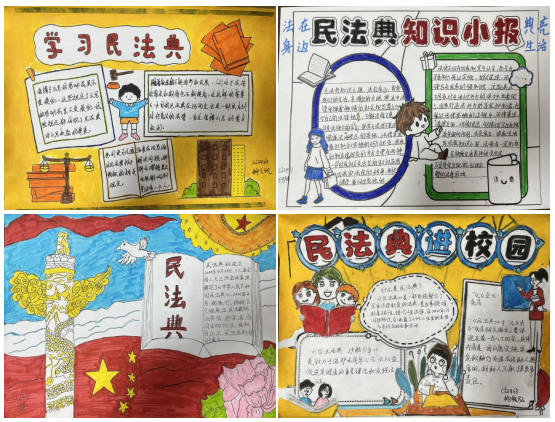 组织开展“‘法’在身边‘典’亮生活”手抄报评比活动,各班学生以民法典条文为基础,搭配生动案例插图,标注温馨提示语,立体展现民法典在保障人身权益、规范财产关系、护航日常生活等方面的重要作用