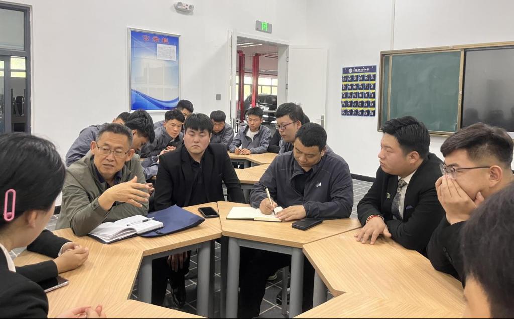 随后,陈怀宝、王会平一行与奥迪订单班学生召开了座谈会,了解了学生在订单班的学习,实训、生活情况,听取学生意见建议,解决学生在实训过程中遇到的问题。同时鼓励同学们要认真学习、刻苦钻研,通过订单班学习提升个人综合能力,并对目前存在的困难将竭尽全力协调解决。