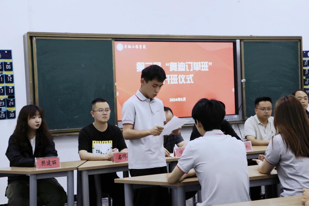 “奥迪订单班”学生代表吉甫同学做了表态发言,他感谢学校和甘肃中盛奥华汽车销售服务有限公司为他们提供的这次宝贵机会,表示将会珍视这次难得的学习机遇,以满腔的热情与坚定的决心,全身心地投入到订单班学习中,不断磨砺自我,努力提升自身综合素质与专业技能。