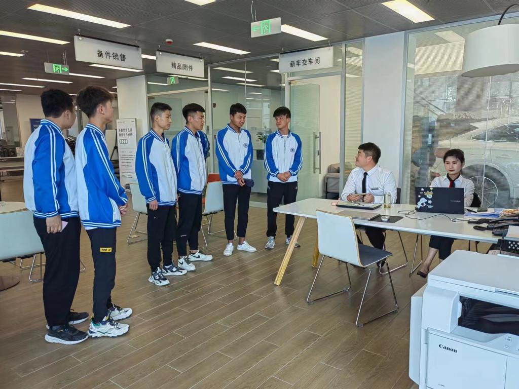 整个实训环节,由学院和企业共同制定实训计划、实施考核评价,完全按照奥迪4S店营销流程开展实训,共设有销售顾问、试驾、服务接待、服务顾问、机电维修等5个实训岗位。根据教学需要,分配工作任务,采用“师徒制”,实行“轮岗轮班制”的实训模式,使学生能够充分认识营销各岗位要求,切身体验4S店运营模式。实训期间,同学们积极向各岗位师傅请教学习,秉持“深学、真悟、勤问、善用”的实训态度。