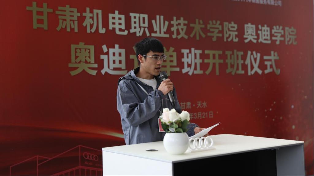仪式上,甘肃中盛奥华汽车销售服务有限公司总经理葛建云从企业发展前景、用人标准、订单班培育成果产出等方面做出详细阐述,并鼓励订单班学生不负韶华,努力学习,知技并行,为最终步入职场打好坚实基础。